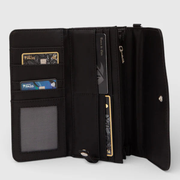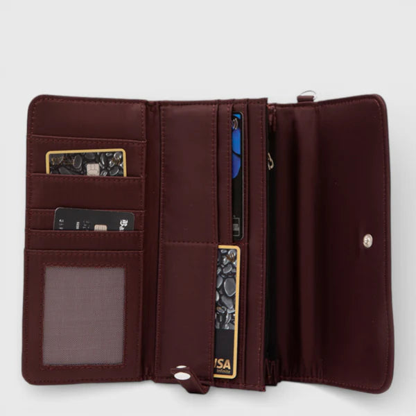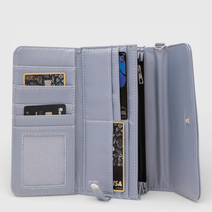 La Billetera Charlotte destaca por su diseño alargado y funcional, con espacio para tarjetas, billetes y más. Renovada con detalles modernos y colores versátiles, es el complemento ideal para tu Tote o Purse Charlotte ¡Organización total con un toque clásico!